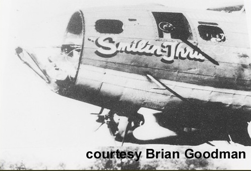 Smilin Thru remained out of service, so the crew were assigned a replacement ship.Flat Foot Floogie was originally from the 305th Bomb Group. It had been shifted to the 533rd squadron and was now reassigned to Lt Yorba in the 534th. Either the photo above was taken before the final reshuffle or the ground crews did not have time to repaint the squadron logo. Anyhow you can still see the logo of the 533rd on Flat Foot Floogie just below the pilot in the picture above.