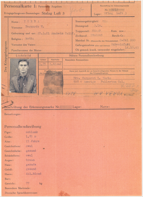 Lt. Yorba, Childers and Gracey were initially sent to Stalag Luft 3, far off to the far east of Germany (Sagan-Schlesien is now in Poland) but were later moved back to Nürnberg -Langwasser, quite close to Schweinfurt.