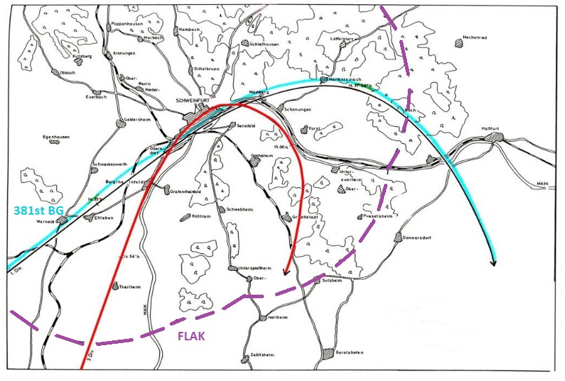 The attack course of the 381st was 050 degrees. Source unknown. No copyright infringement intended.